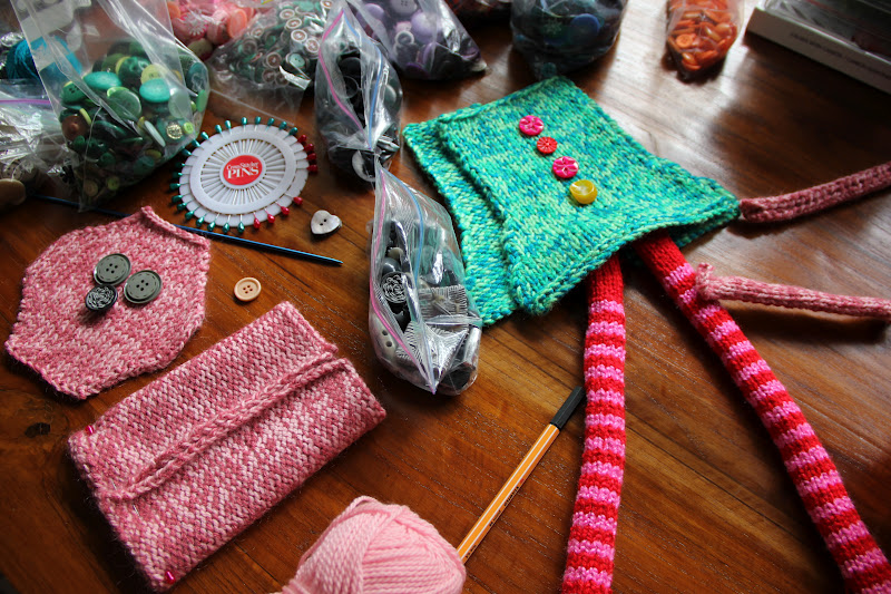I've followed the notions (pair of 4,5mm needles, darning needle, toy stuffing, sewing needle and thread, buttons) and the pattern, but I'd had personalized it a bit...