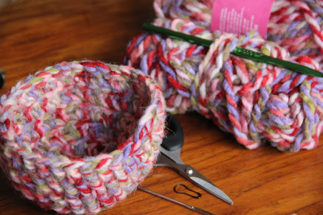 - super chunky yarn, that suggests the use of 10mm hook (UK 000, USA- )