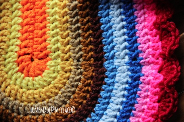 ReplyDeleteHi Ale, what a great tip from Winkie! I might use this from now on and just think less ends to darn in coz there already done! She said to start each round in a different place so really you will hardly see the join. The brown and yellow is very retro! a lovely colourful piece indeed! Heather x