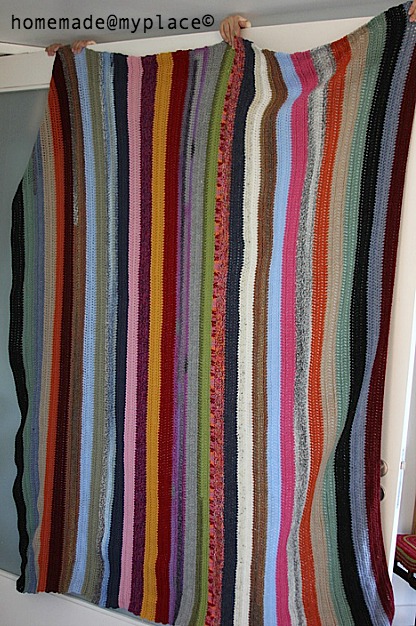 As you notice, while reading the yarn list, there are (few times) more than one yarn in the same row : this because my yarn was not sufficient to complete the row, so I had to choose one more colour to complete my stripe!!! I think this fact gives a more handmade feeling to the all blanket, that's is even unique!!!!