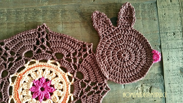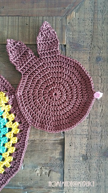 Then, I added a bunny head and a bunny tail to my first granny I made ....