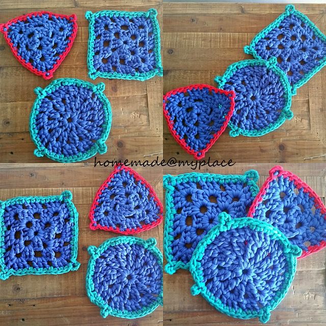 At the end of THIS POST I wrote that I had some leftovers from my t-shirt yarn and some royal blue to try .... I did!!!!
