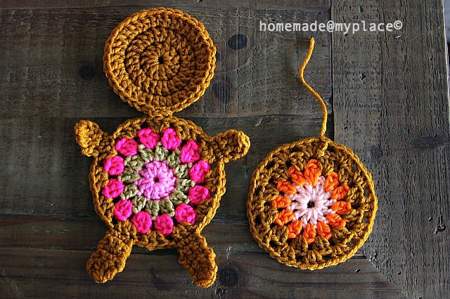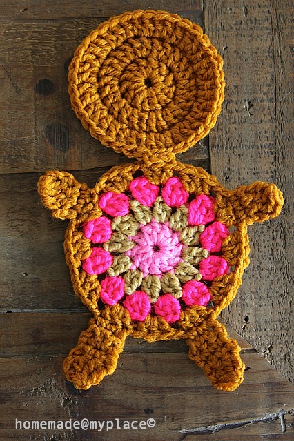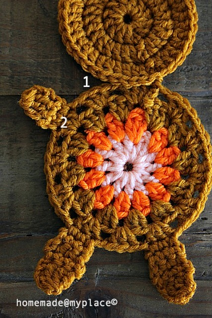 The legs will be crocheted in shells 5 and 7, while arms (see later) will be crocheted in shells 2 and 10.