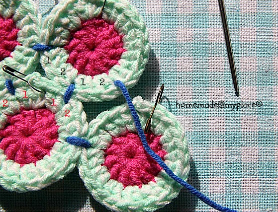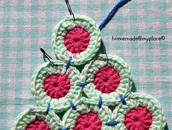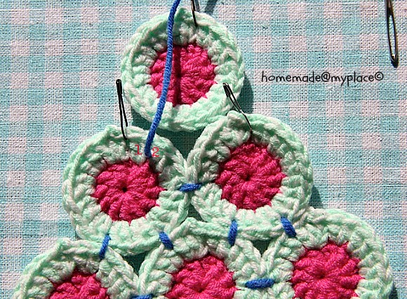 …. and while crocheting the 4th round of this second diamond, I joined it with the first one using the join as you go method…