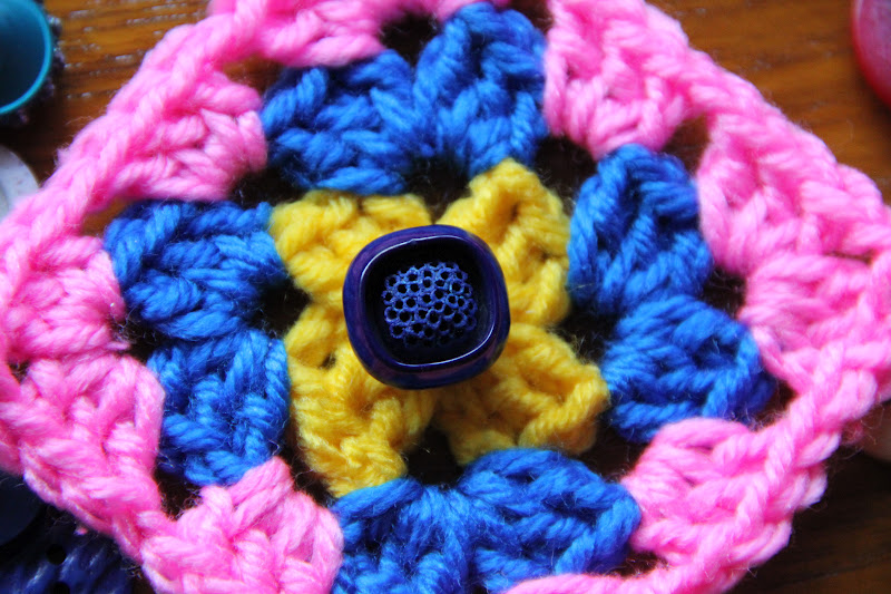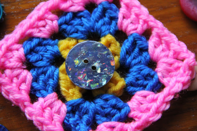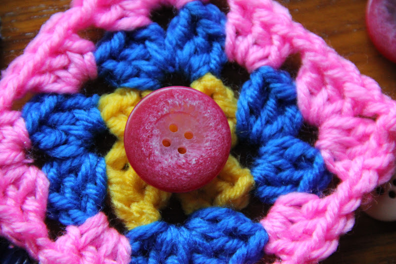 Ok, now grab some cotton threads to sew the buttons on the granny...