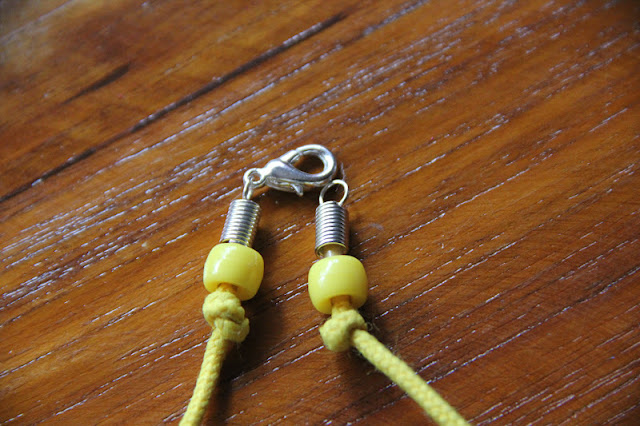 First, I've knotted a string (a bright yellow shoe string, in this case!) at one corner...