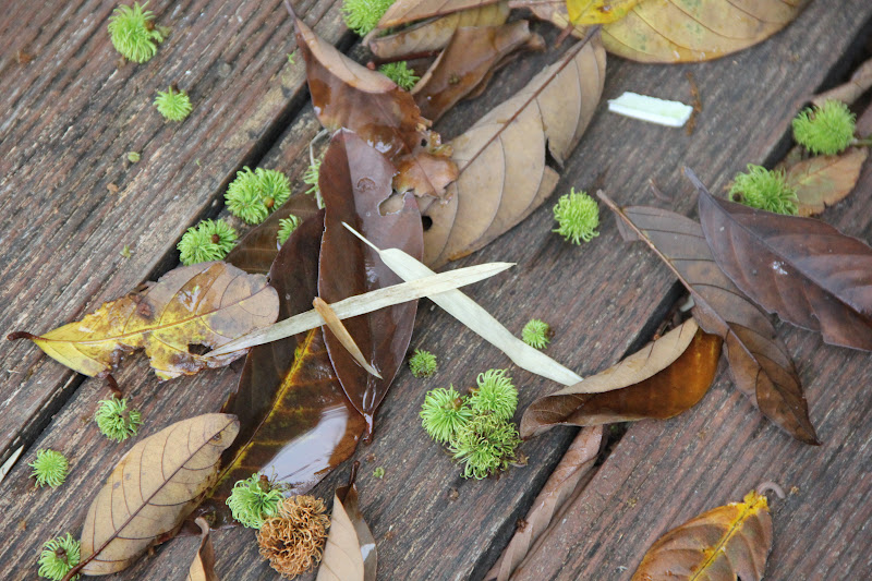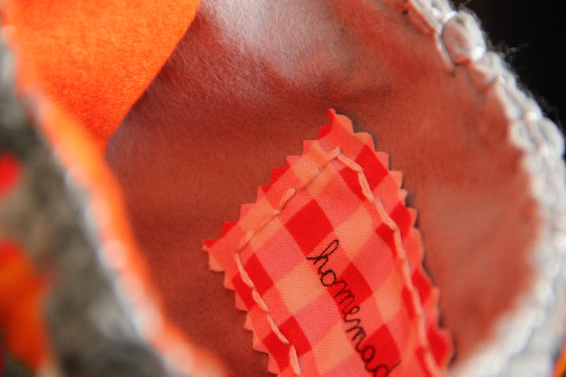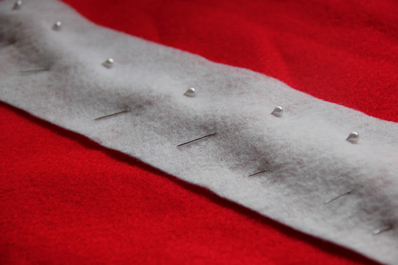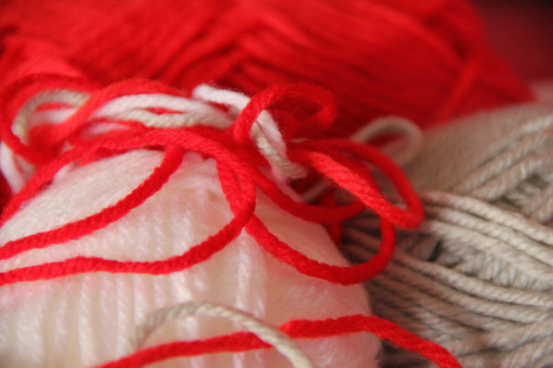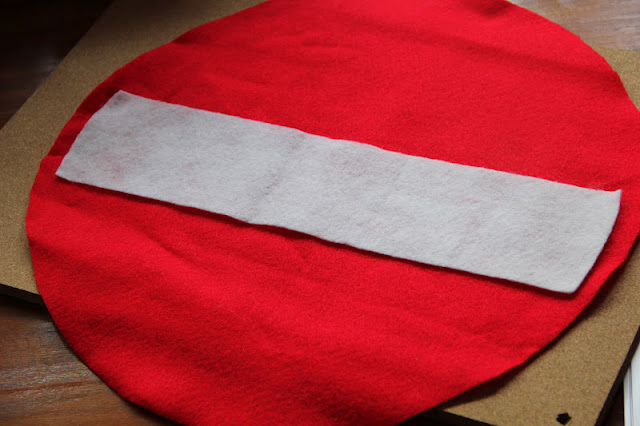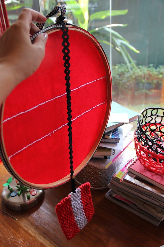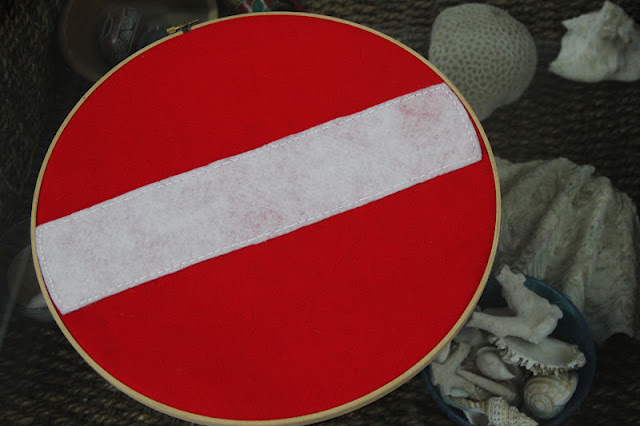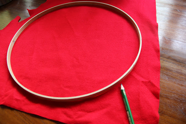So, I collected the biggest one, some red and white felt from my stash, needles, scissors, cotton threads and a pencil...