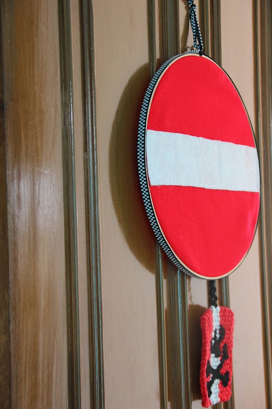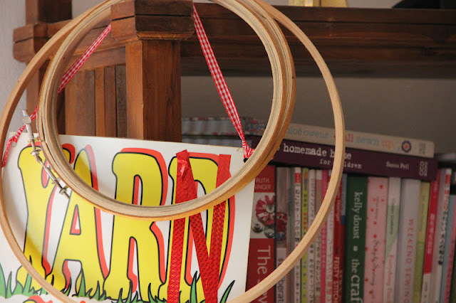 From the sofa, where I was sitting & knitting, I saw my little collection of embroidery loops and the idea popped in my mind...