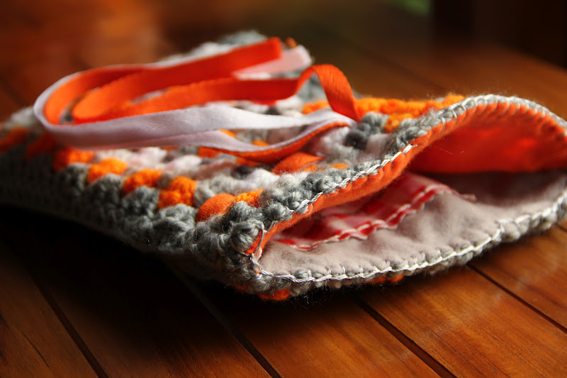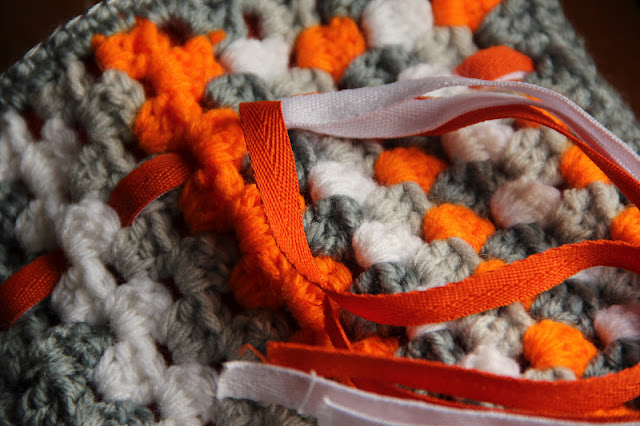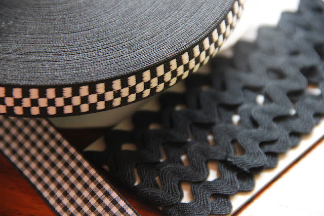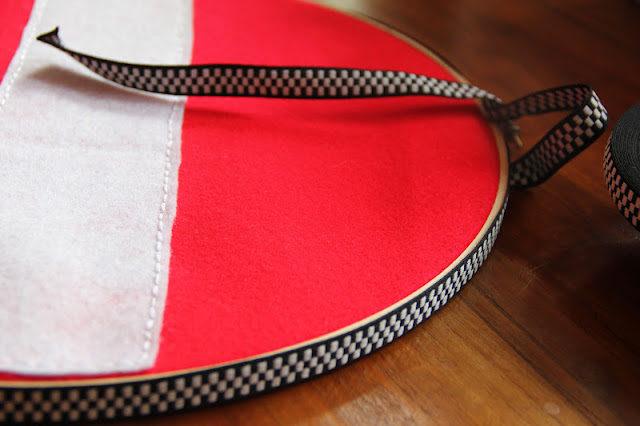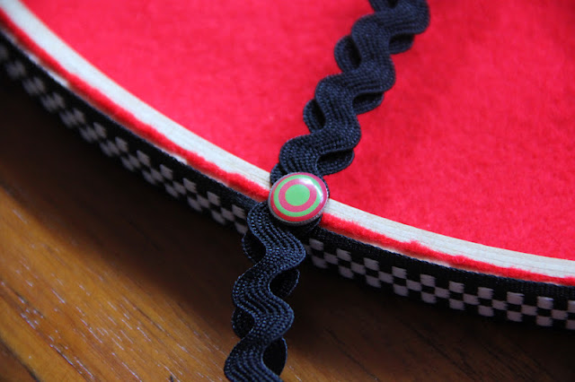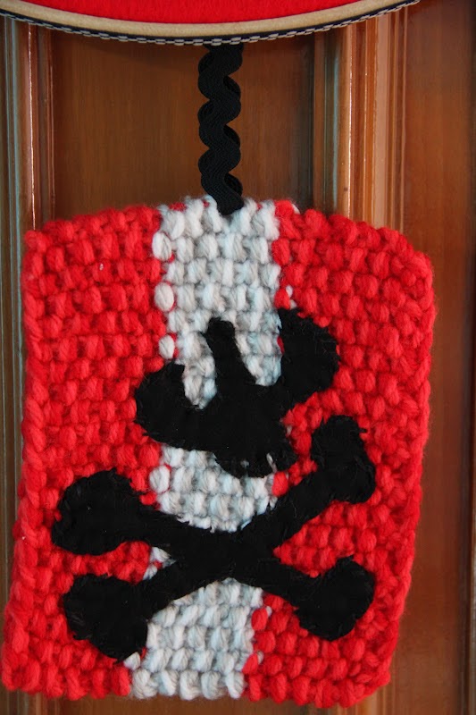 I knotted (back top) and pinned (back bottom) some black ric rac to let hang the pirate flag (no prisoners...)
