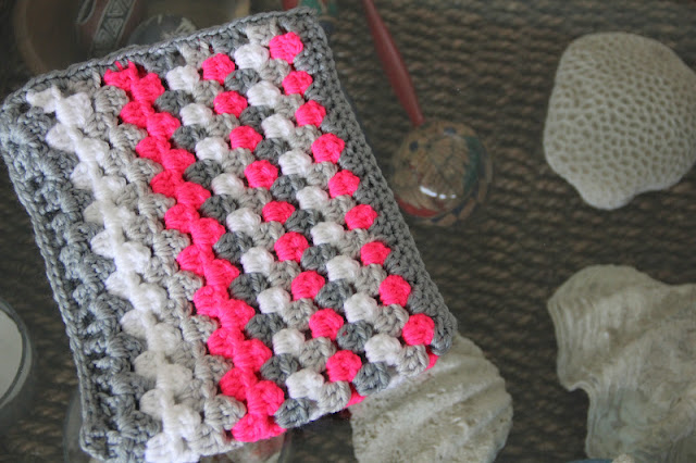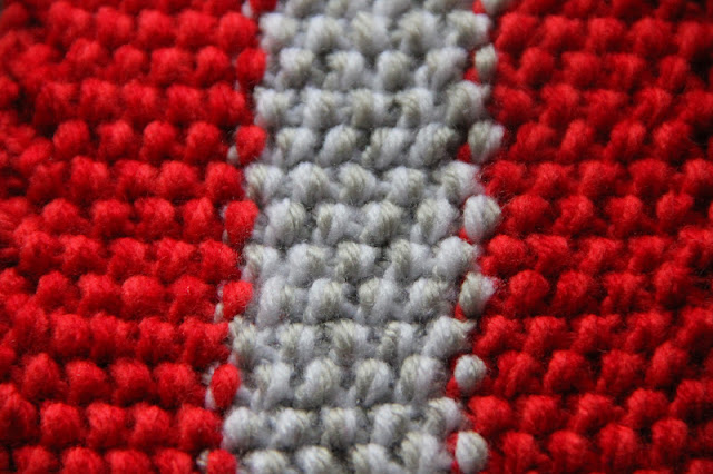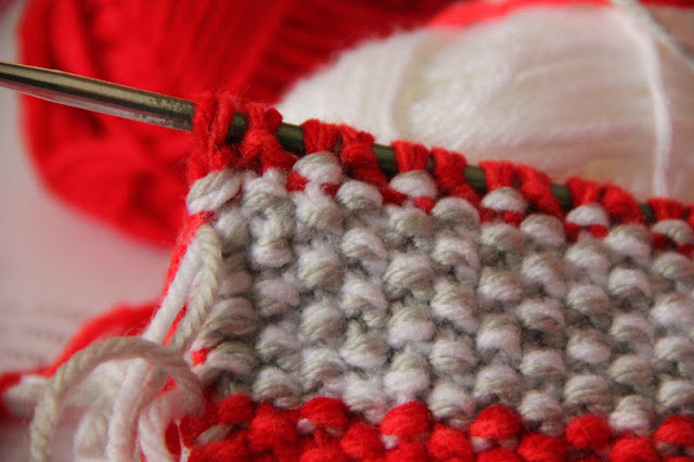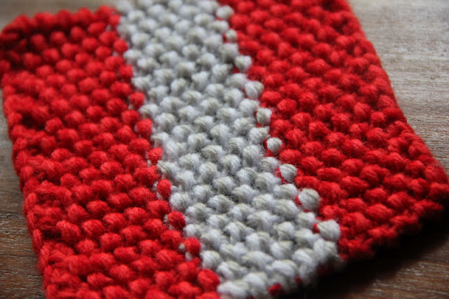 and the thing on the needles turned out to be a little rectangle (21 stitches, moss stitch, 30 rows, needles #5!!)...