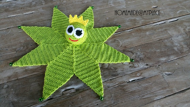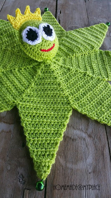 I opted for a simple thing as a "lovey security blanket"(a very quick project, made in one afternoon!!), resembling "The Frog Prince" by Brothers Grimm ...