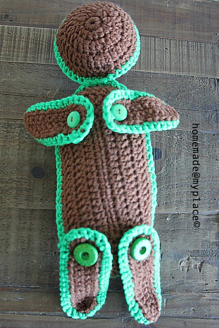 Just follow the same instructions given for the arms, but you have to crochet a longer foundation chain : in fact, you need to chain 15 stitches!