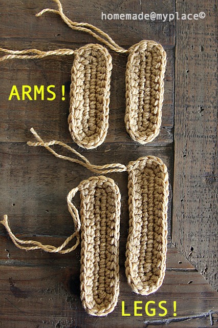 ARMS and LEGS (crochet 2 identical pieces for each limb)